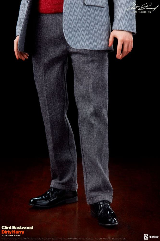 Based on Clint Eastwood's appearance in the action-thriller film Dirty Harry, the Harry Callahan Sixth Scale Figure features a carefully crafted portrait with the actor's iconic scowl, perfect for staring down the criminals in your collection. This essential neo-noir antihero also wears a custom-tailored fabric costume including a shirt, pants, a burgundy vest, a striped tie, a belt, a herringbone jacket with elbow patches, and a shoulder holster that fits beneath the jacket.