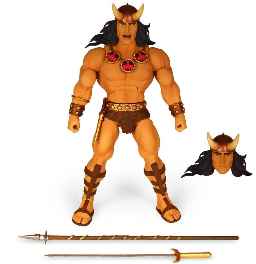 Conan comes with spear, sword, dagger, and necklace accessories plus an alternate head!