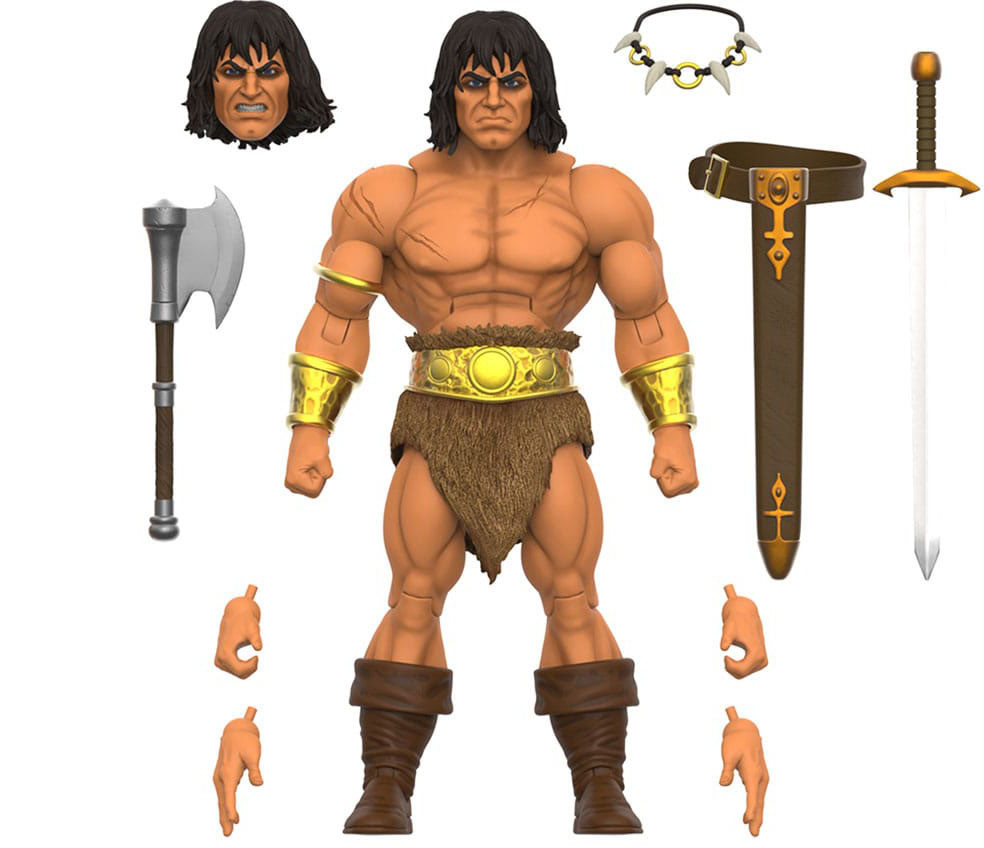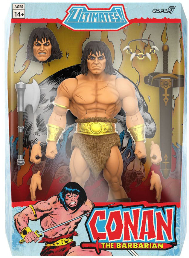 Conan the Barbarian is an unstoppable force and anyone foolish enough to stand against him will likely not live long enough to regret their poor judgment! This 7" scale, highly articulated Conan ULTIMATES! figure of Conan the Barbarian is inspired by his appearance in late 70's comic books, and its intricate sculpt and premium paint detail leave no doubt as to his ferocity and determination. Featuring interchangeable heads and hands, this figure also comes with a soft goods loin cloth and axe, sword with removable sheath, and necklace accessories. There's no adventure or challenge that this made-to-order Conan Conan the Barbarian ULTIMATES! can't take on- order yours today!