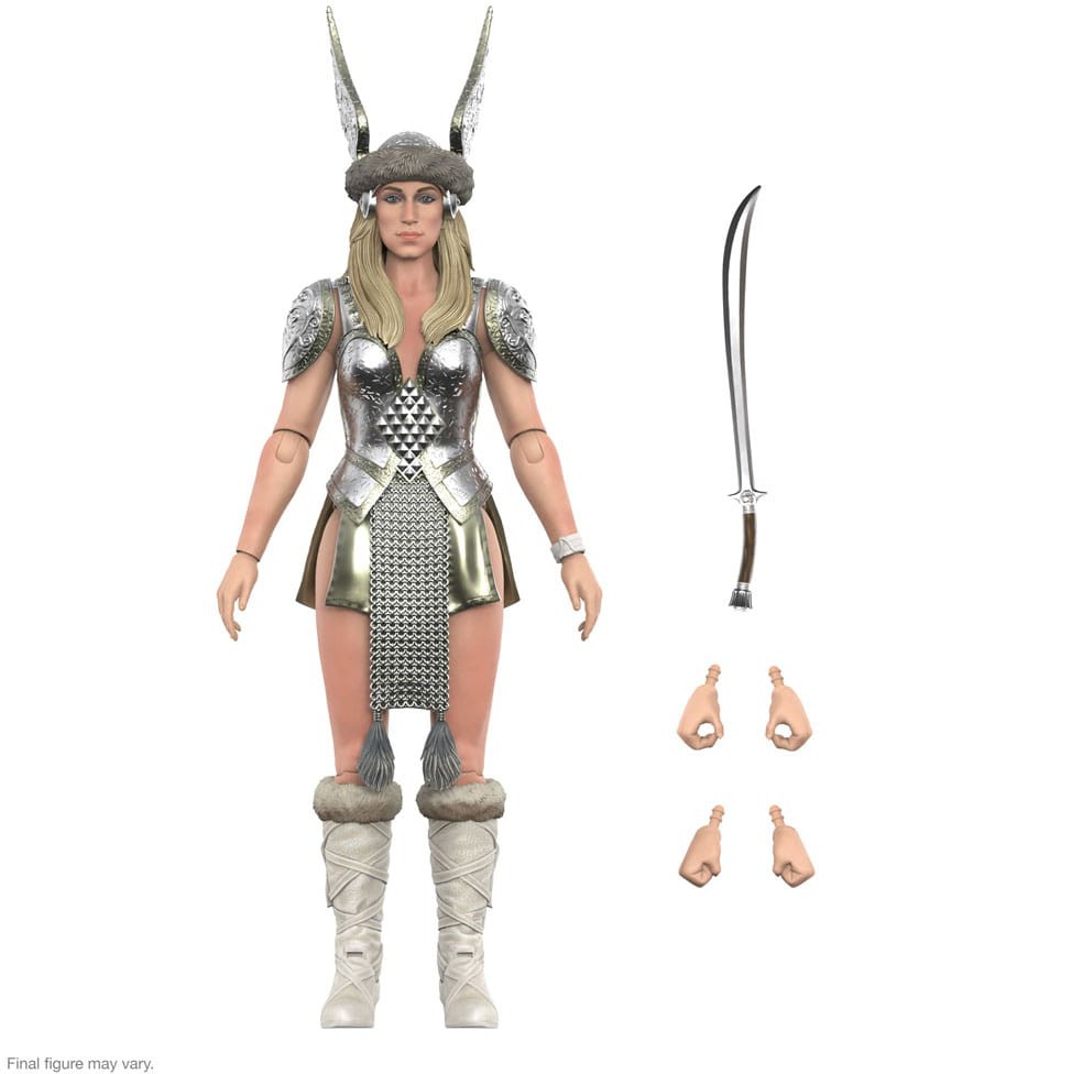 "Do you want to live forever?" The spirits exacted the ultimate toll on her for bringing Conan back from death, but Valeria's spirit reappears at the Battle of the Mounds and intercedes one last time to aid Conan at a pivotal moment. This 7" highly articulated Conan the Barbarian ULTIMATES! figure of Battle of the Mounds Valeria Spirit shows Conan's beloved companion and fellow warrior in her Valkyrie-like spirit form and comes with multiple interchangeable hands as well a Valkyrie sword accessory. Honor her brave sacrifice by adding the made-to-order Conan the Barbarian ULTIMATES! figure of Valeria Spirit to you collection!
