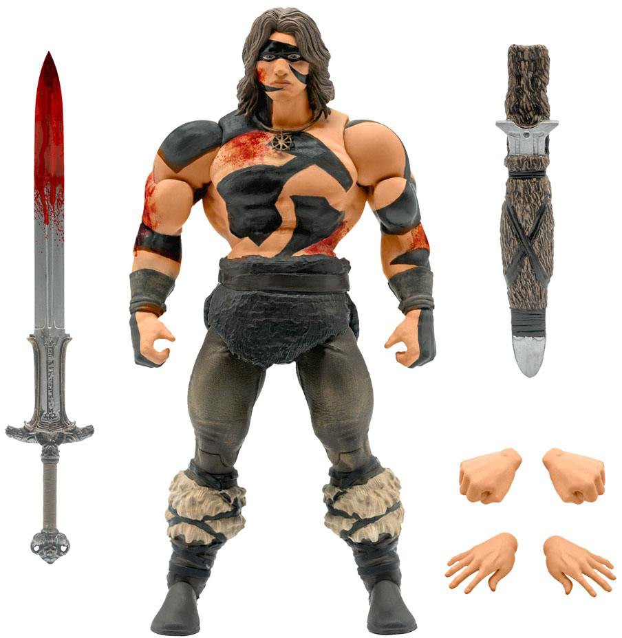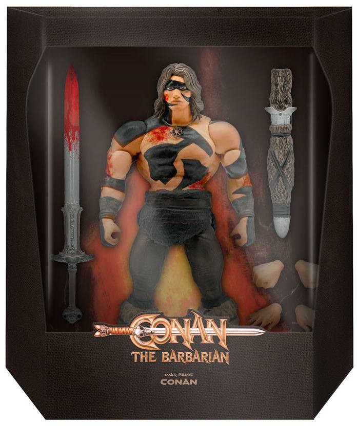 Som om hans kroppsbyggnad inte var tillräckligt hotfull, denna Conan the Barbarian in War Paint ULTIMATES! figur är mardrömsbränsle för dem som skulle stå emot honom. Baserat på scenen från Conan the Barbarian-filmen där Conan invaderar Mountain of Power-templet, är Conan klädd i sin krigsfärg och nerstänkt i bevis på striden som just inträffade. Han kommer med the Atlantian sword, dess mantel och utbytbara händer. Denna 7 "högartikulerade actionfigur är tillverkad på beställning och begränsad upplaga.
