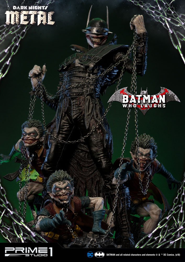 Prime 1 Studio is proud to present 1/3 Scale MMDCMT-01: Batman Who Laughs from Dark Nights: Metal. The Batman Who Laughs is a supervillain in the DC Comics universe. He is a "Jokerrized" version of Batman who originated from the Dark Multiverse. He is the team leader of the Dark Knights and their goal is to help their master Barbatos plunge the Multiverse into complete and utter darkness. This course of action makes them enemies of the Justice League. He serves as the secondary antagonist of the event Dark Nights: Metal. This is a must have for all DC Comics Dark Nights: Metal fan!