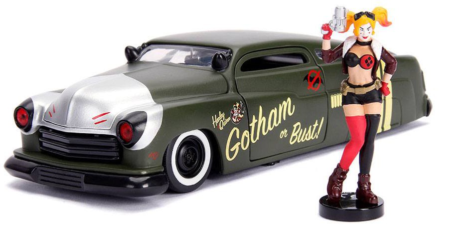 DC Bombshells Diecast Model Hollywood Rides 1/24 1951 Mercury with Harley Quinn Figure.