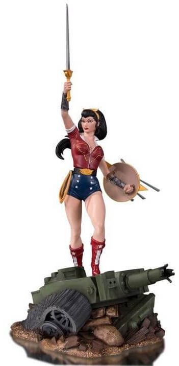 Talk about a bombshell! The legendary Amazon warrior, Diana Prince, conquers an Axis tank on this addition to the DC Designer Statue Line. This is the DC Bombshells Wonder Woman Deluxe Statue designed by Ant Lucia and built in high strength poly resin and is ready for battle to free the world from tyranny.