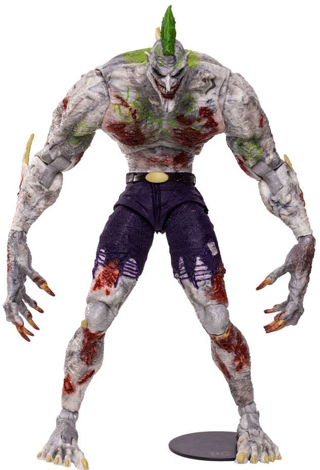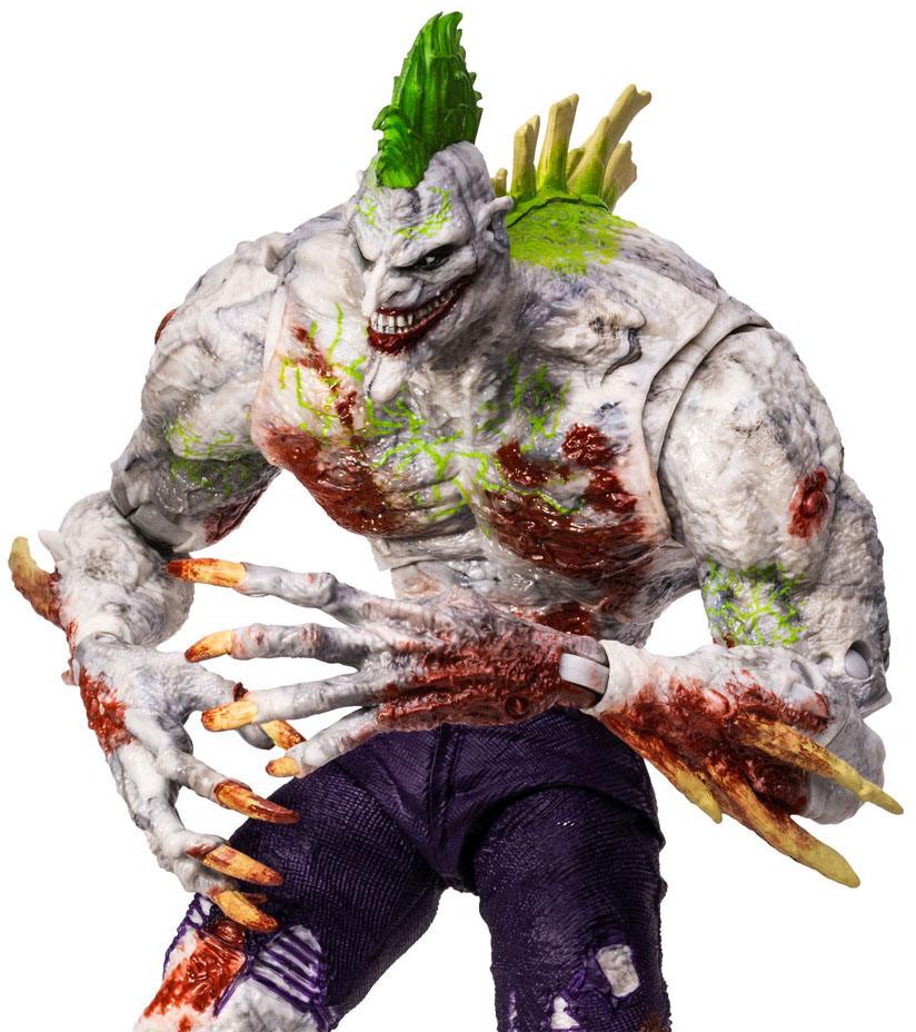 An insanely dangerous Super-Villain, The Joker's white skin, green hair, and blood-red lips belie the chaotic nature underlying his cartoonish appearance. The self-styled Clown Prince of Crime has no superpowers, beyond a capacity for incredible violence and a skill at creating deadly mayhem. He frequently concocts elaborate schemes to entrap his arch nemesis, Batman. One of The Joker's most evil schemes involves his use of the Titan Formula, a potent toxin he secretly funded to be a successor to Bane's Venom. Once injected with it, the host mutates into a large monstrosity and gains vast strength and durability, which allows The Joker to unleash a horrifying army upon an unsuspecting Gotham City! Always thirsty for power, The Joker even injects himself with the formula and transforms into The Joker Titan... but it all proves futile when Batman thwarts The Clown Prince of Crime's plans and stops the chaos from spreading any farther.