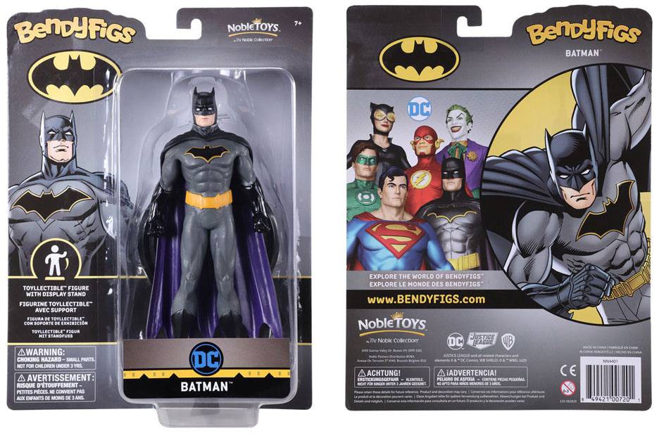 A number of heroes and villains from both DC Comic and the Warner Brothers movies will be offered throughout the year. We commence this with the following 7.5-inch Bendyfigs. Each comes on a DC branded display stand with the character's logo displayed on the front, in a blister pack that can be displayed either from a hook or free standing on a shelf.