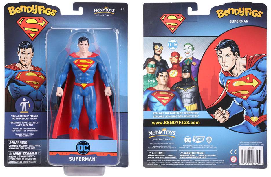 A number of heroes and villains from both DC Comic and the Warner Brothers movies will be offered throughout the year. We commence this with the following 7.5-inch Bendyfigs. Each comes on a DC branded display stand with the character's logo displayed on the front, in a blister pack that can be displayed either from a hook or free standing on a shelf.