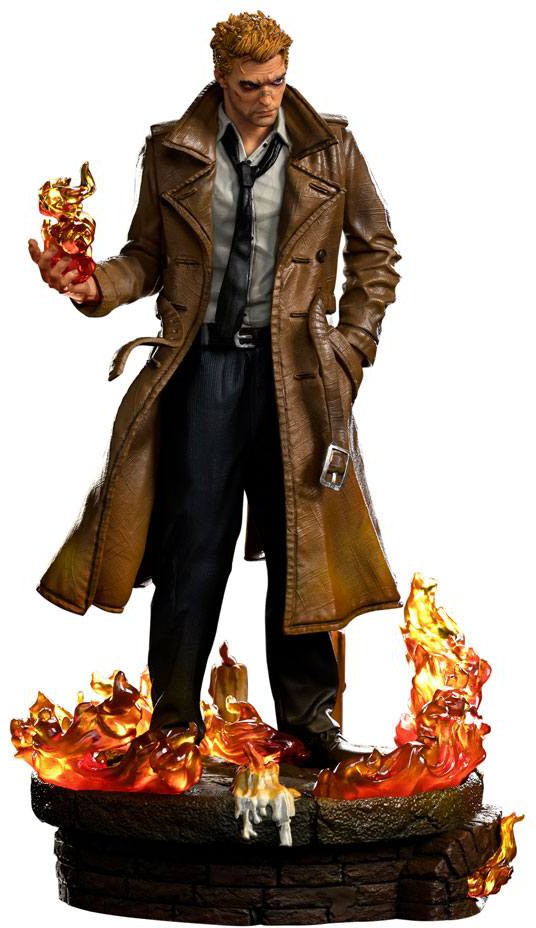 Protected from the dark supernatural forces inside a circle of mystic flames and candles, the British occult detective with blond hair and stern eyes plays with fire in his right hand, stripped down of resources other than his wide knowledge and boldness, wearing his inseparable brown overcoat, he faces most of his challenges trusting mainly on his cunningness. Chosen by fans through voting during the virtual event Inside Iron Studios, Iron Studios presents their statue "Constantine DC Comics Series #7 - Art Scale 1/10", with the popular and mystic anti-hero, known for breaking rules and doing whatever it takes to fulfill his job.