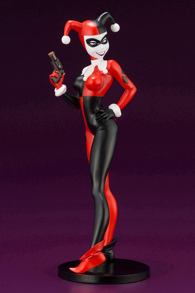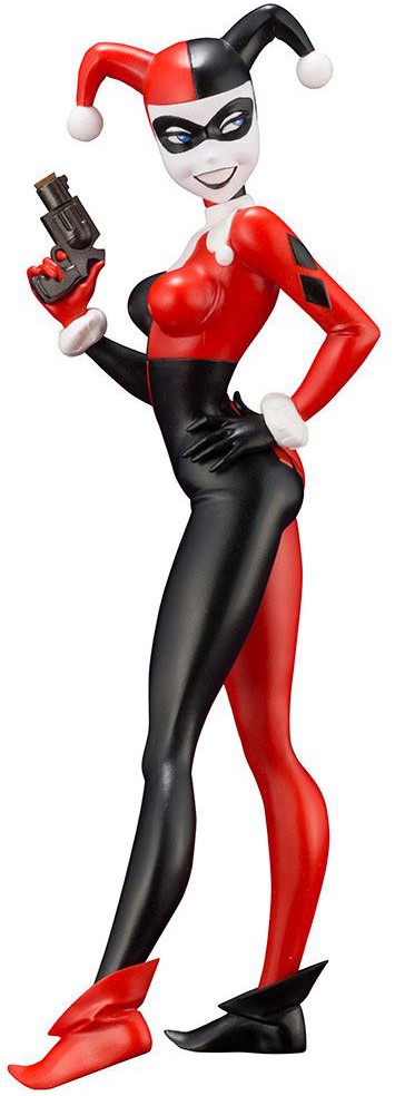 Batman: The Animated Series was created in the wake of the success of Tim Burton's Batman films in the 90s. The series enjoyed widespread acclaim thanks to the dynamic animation by Bruce Timm, its Noir inspired aesthetics, and its darker tone that appealed to adult audiences. Finally making her entrance to Kotobukiya's ARTFX+ series is the famous villainess and partner to the Joker, Harley Quinn!