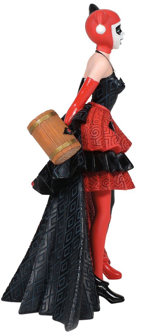 Whatcha got behind your back there, Harley? Uh-huh. It sure looks like that oversized mallet you're so famous for. And what's that sneaky little grin on your face all about? Well, you do look ravishing in your trademark colors and exquisite detail in this terrific DC Comics Harley Quinn Couture de Force Statue. Measuring about 7 3/4-inches tall, Harley is made from resin and stone powder. Won't you please take her home to your collection before The Joker gets back?