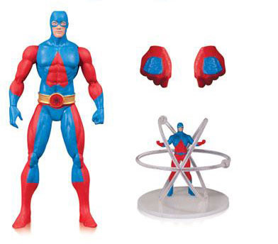 Atomica är ca. 15 cm hög och levereras med Ray Palmer (ca. 4 cm hög) och Ryan Choi (ca. 8 cm hög).