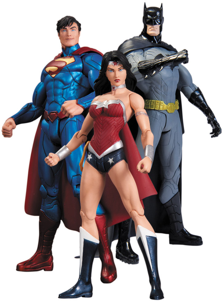 Ett härligt 3-pack actionfigurer från DC Collectibles. De tre ikoniska hjältarna Superman, Batman och Wonder Woman i The New 52.
