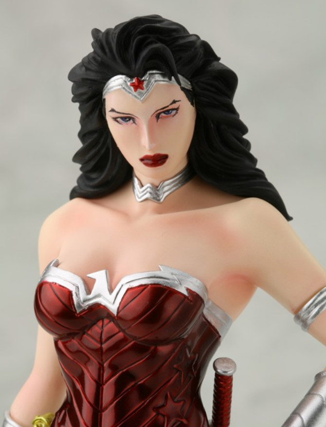Många fina detaljer och snygg metallicfärg på vissa utvalda delar. Till skillnad från många andra Artfx+ statyer från Kotobukiya, som sätts ihop med några enkla klick, så är Wonder Woman redan färdigbyggd direkt i förpackningen.