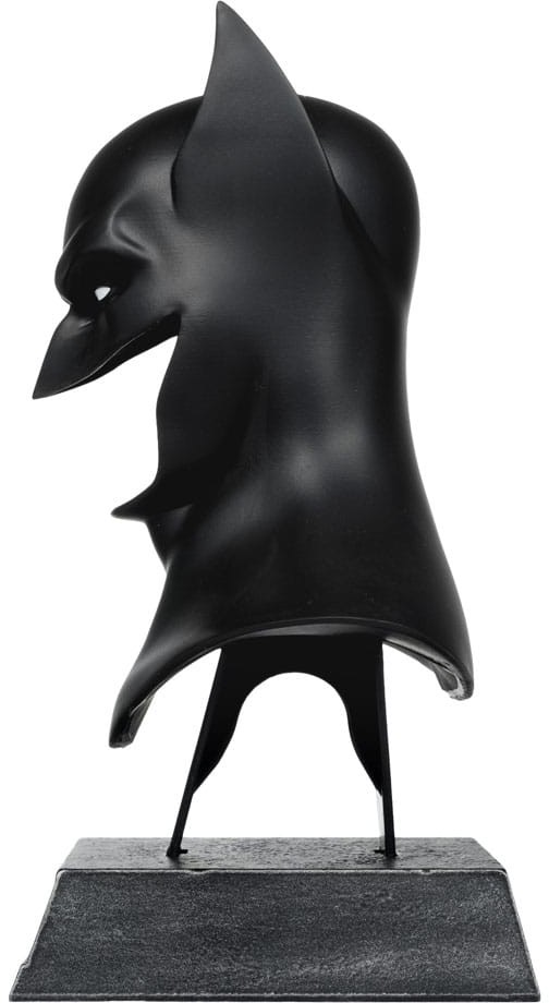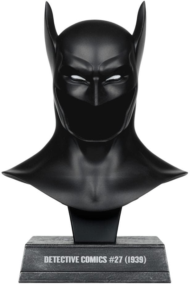 BATMAN has dedicated his life to an endless crusade, a war on all criminals in the name of his parents, who were taken from him when he was just a child. Since that tragic night, he has trained his body and mind to near physical perfection to be a self-made super hero. He's developed an arsenal of technology that would put most armies to shame. He is vengeance. He is the night. He is BATMAN! - 1:3 SCALE COWL REPLICA based on Batman's First Appearance (Detective Comics #27). - Stands approximately 7" tall. - Includes display stand.
