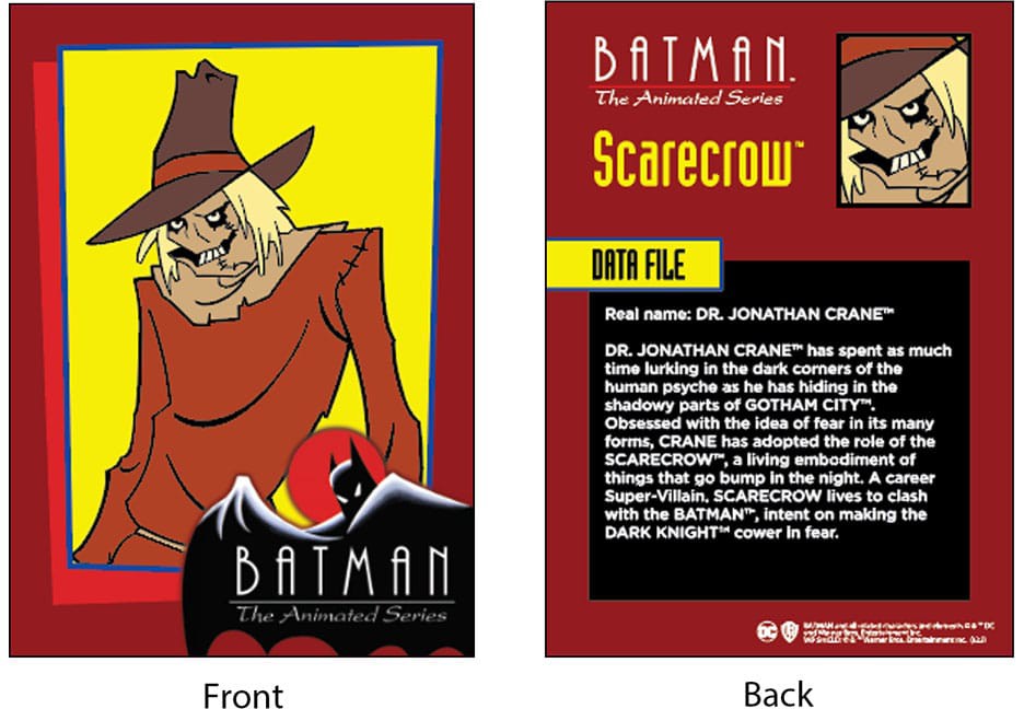 DR. JONATHAN CRANE™ har ägnat lika mycket tid åt att lura i det mänskliga psykets mörka vrår som åt att gömma sig i de skumma delarna av GOTHAM CITY™. CRANE är besatt av tanken på rädsla i dess många former och har antagit rollen som SCARECROW™, en levande förkroppsligande av saker som bultar i natten. SCARECROW är en superskurk som lever för att drabba samman med BATMAN™, med avsikten att få DARK KNIGHT™ att krypa ihop av rädsla.