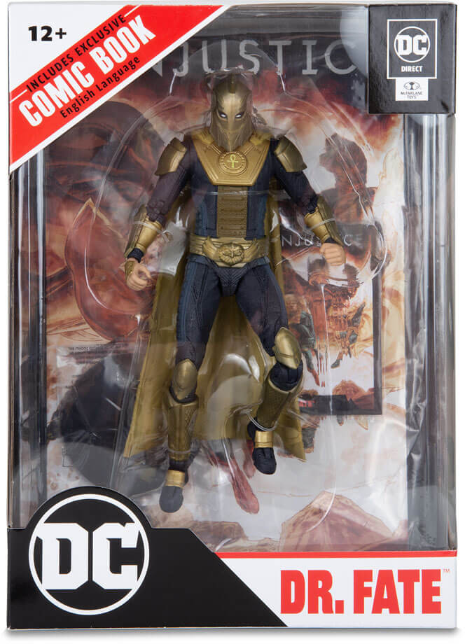- Dr. Fate includes base, collectible art card and an Injustice 2 comic