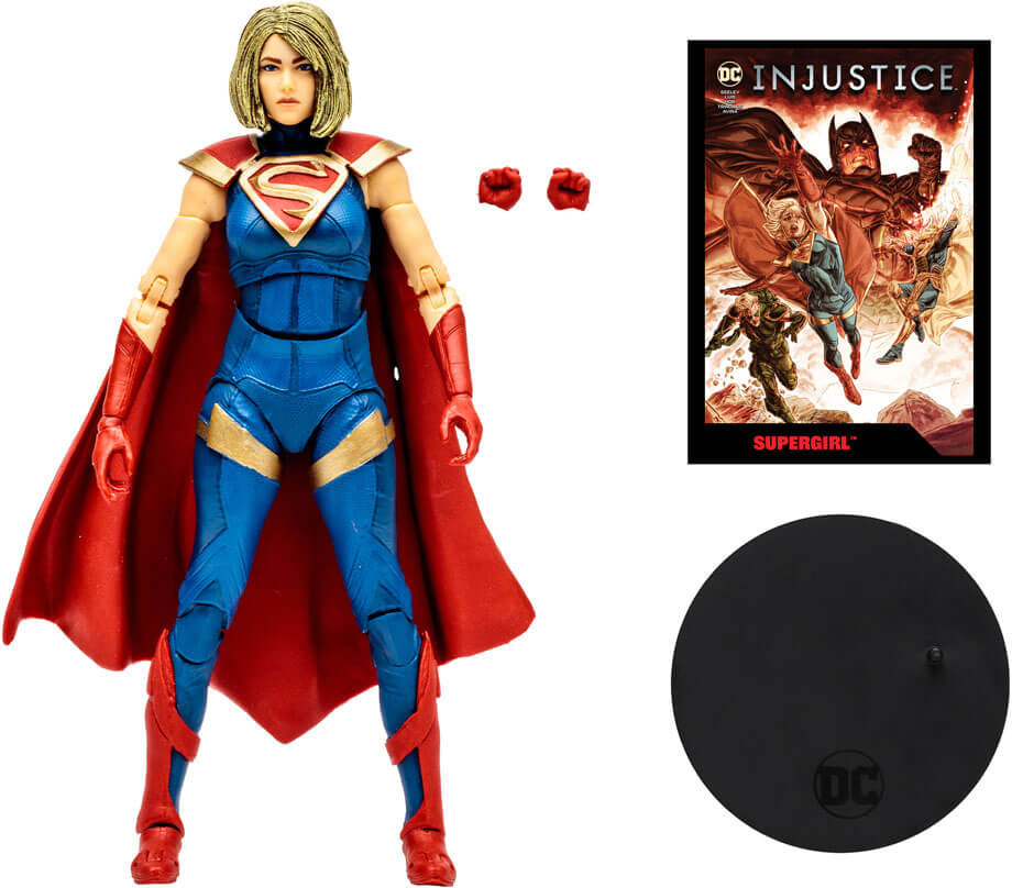 - Supergirl includes alternate hands, base, collectible art card and an Injustice 2 comic