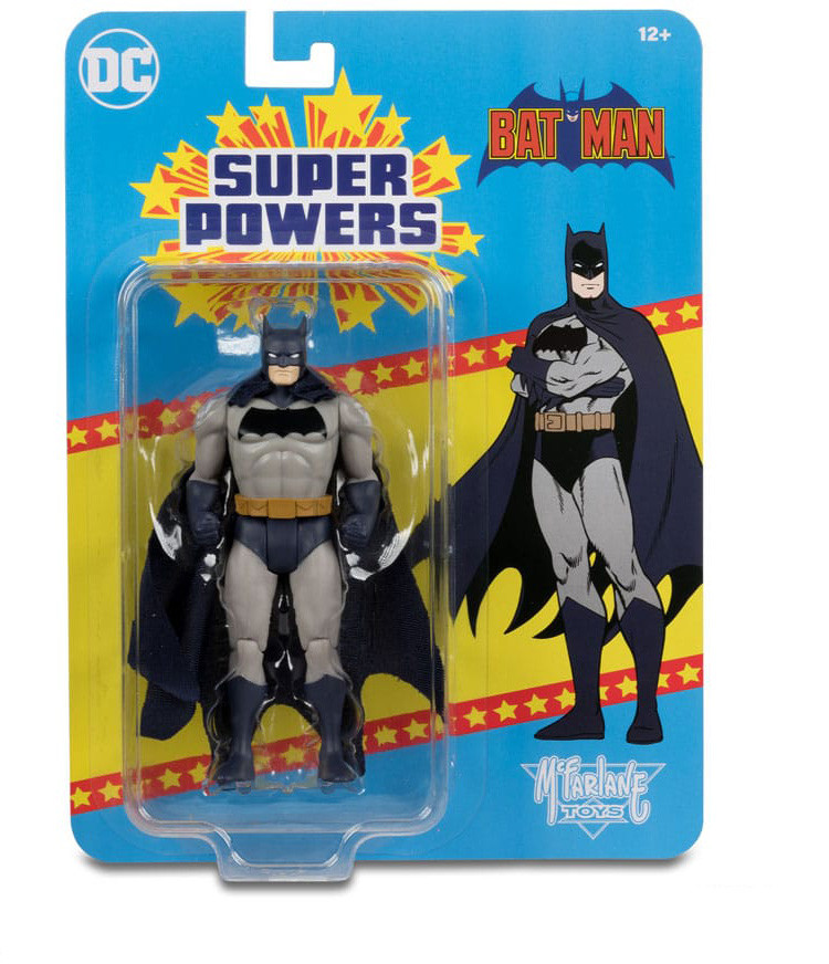 - BATMAN is showcased in DC SUPER POWERS themed blister card packaging