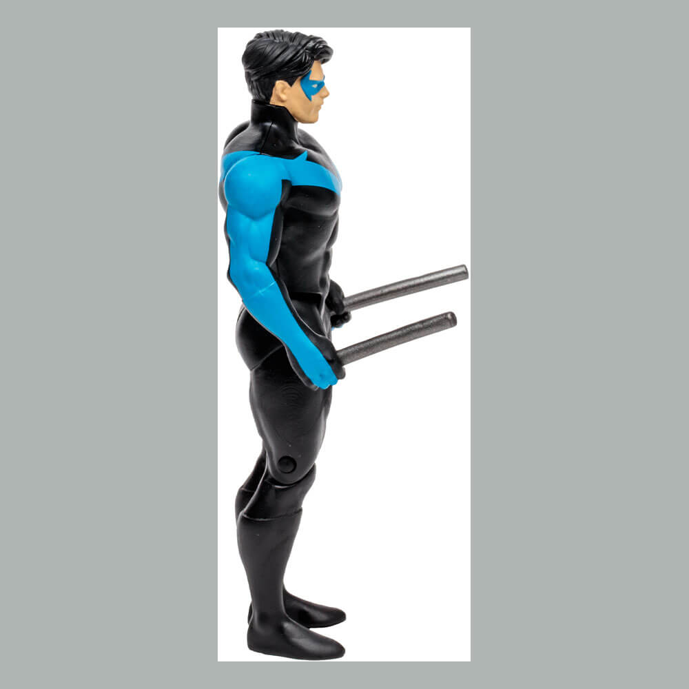 - Nightwing is featured in his classic suit and includes two Escrima sticks.