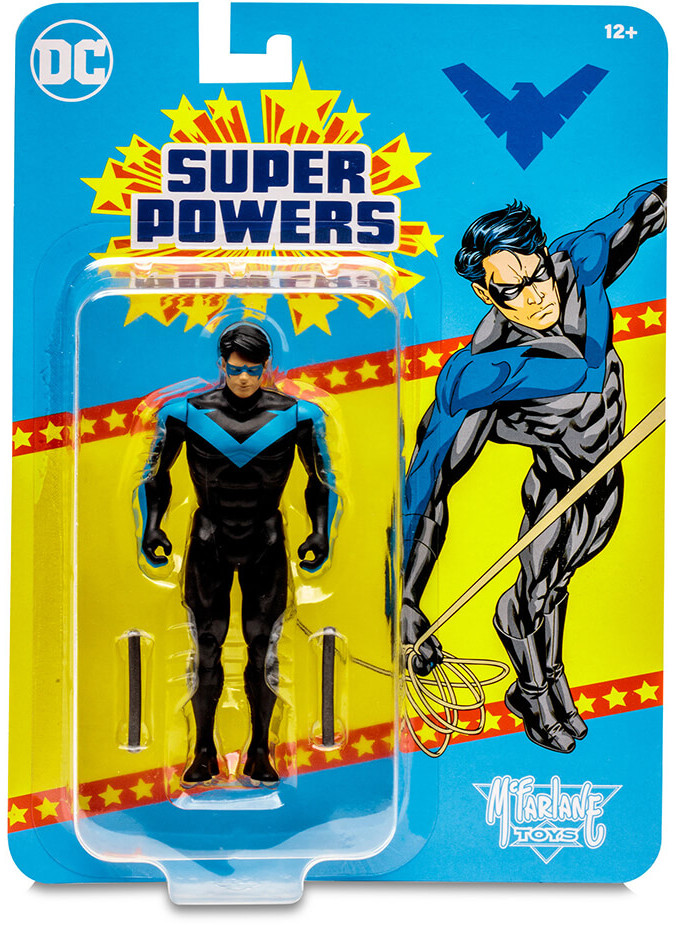 - Nightwing finns med i hans klassiska kostym och inkluderar två Escrima-pinnar.