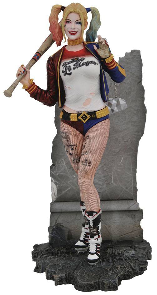 With a bat in one hand and a purse in the other, Harley Quinn is ready for a night on the town in the newest DC Movie Gallery PVC Diorama! Based on her appearance in the Suicide Squad movie, this plastic sculpture features the likeness of actress Margot Robbie, as well as detailed sculpting and paint applications. Designed by Caesar, sculpted by Rocco Tartamella.