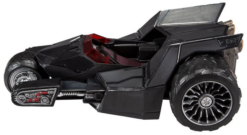 The Bat-Raptor is a state-of-the-art, three-wheeled, open-air roadster built by the Dark Knight himself. Powered by a mighty engine, this trike is able to make massive leaps, scale brutal terrain, and chase down the most evasive criminals. It also features a built-in grappling system and an emergency ejection seat.