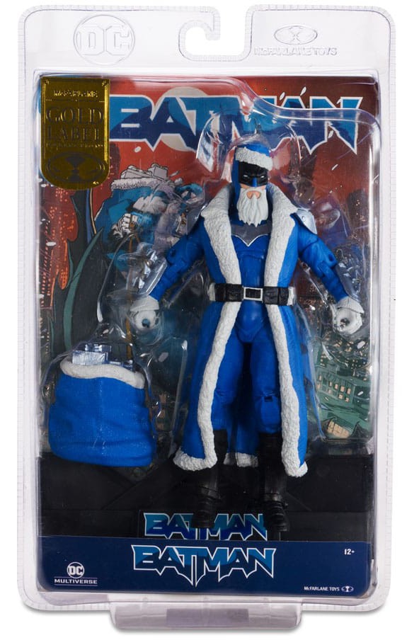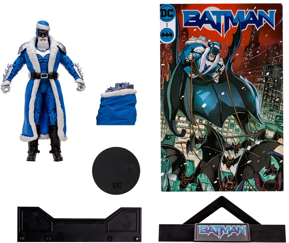 - BATMAN is decorated in blue holiday seasonal attire, and comes with a sack of presents and a figure base