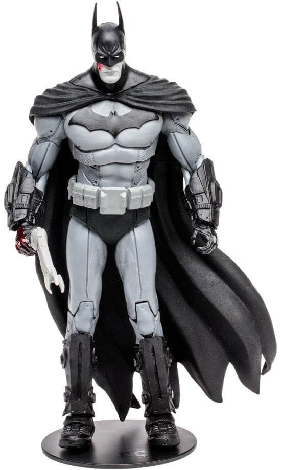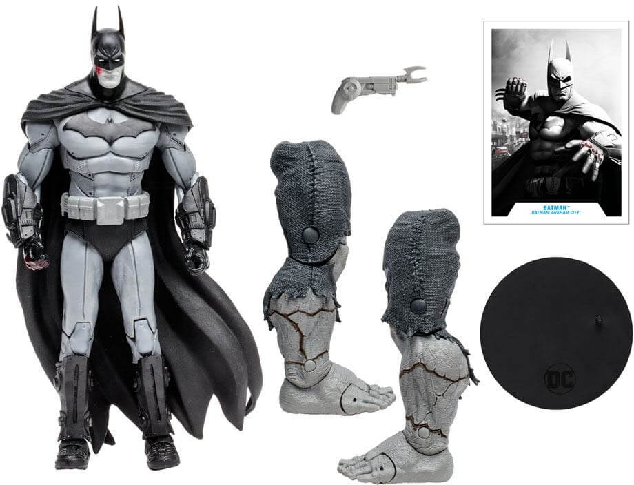 - Batman is featured in his Monochromatic theme outfit based on the Video Game Batman: Arkham City