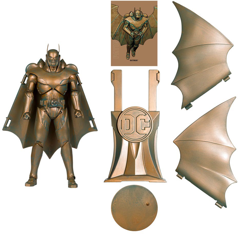 - In a world where heroes have sequestered themselves and alliances shift like shadows, Bruce Wayne stands as a beacon of determination, creating a militia of robots to maintain order amidst the chaos. With his patina deco, Batman exudes a timeless aura of resilience and strength.