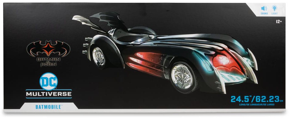 - Batmobile is 24.5" long and features lights and sound