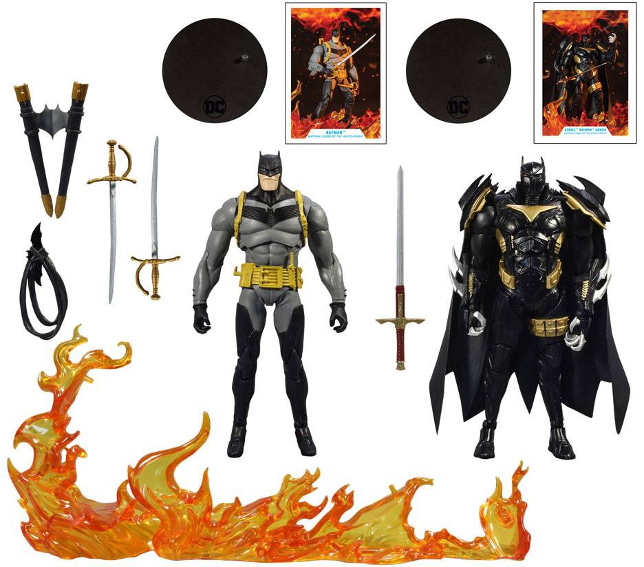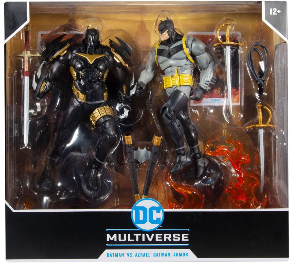 Detaljerade Batman- och Azrael-figurer baserade på DC Multiverse. Figurerna är ca. 18 cm höga och är fullt ledade med upp till 22 rörliga delar per figur. Figurerna kommer med tillbehör i en fönsterkartong.