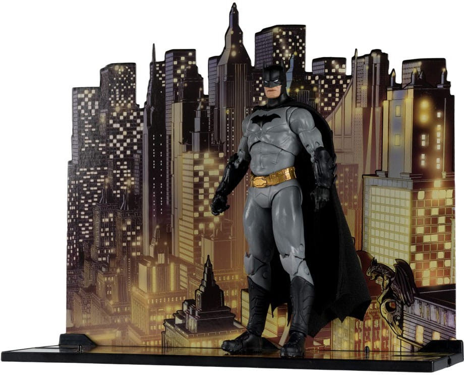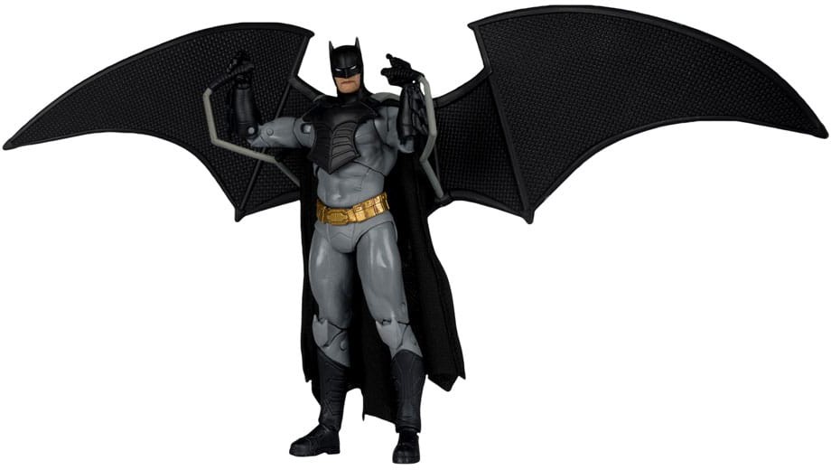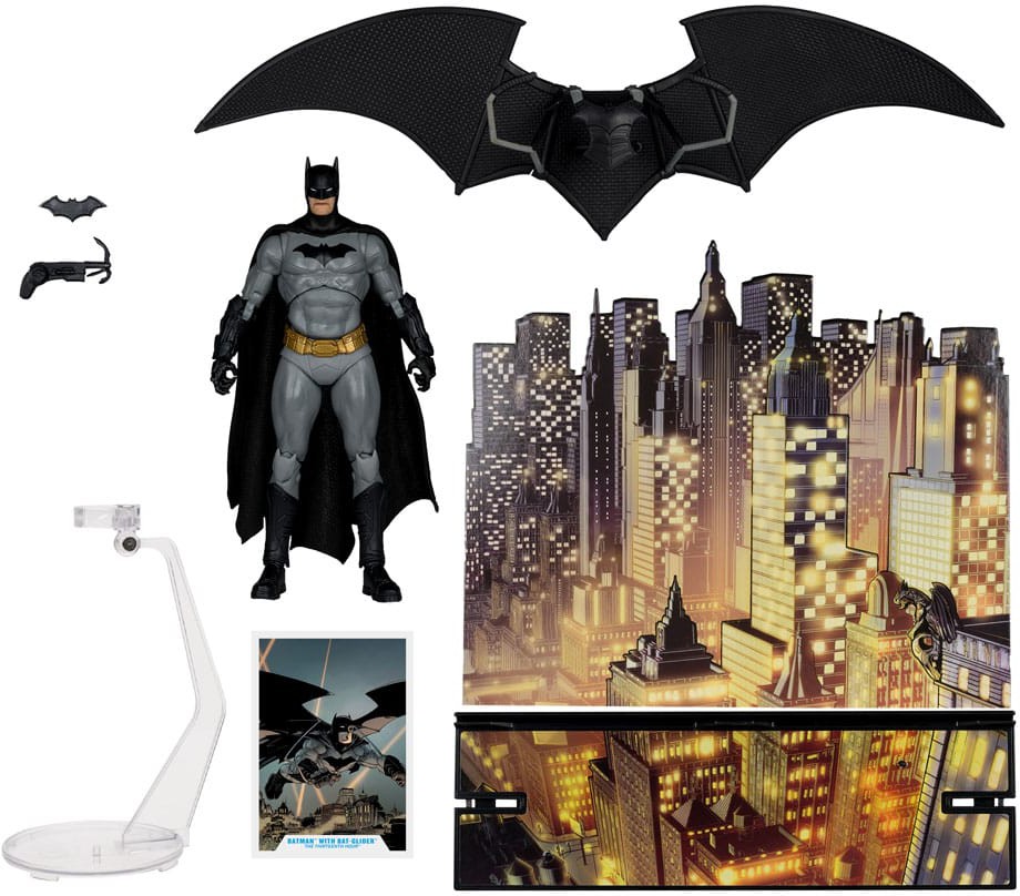 - Tillbehören inkluderar avtagbar Bat-Glider, Batarang, grapple launcher, flight stand och miljöbas med bakgrund