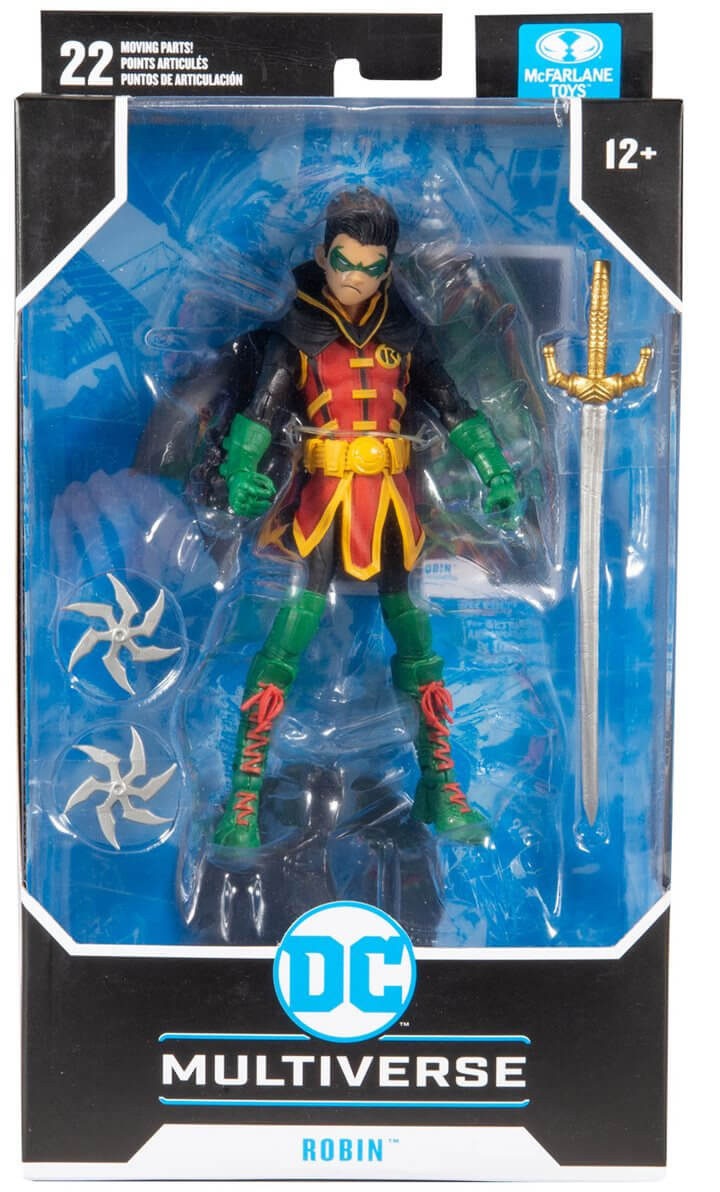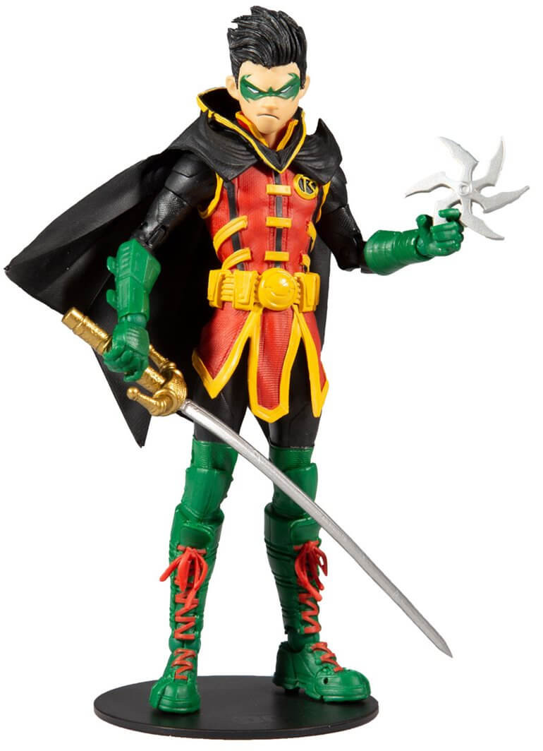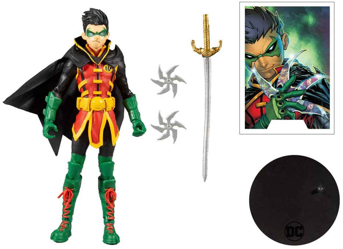 Based off his look in the Teen Titans 2018 comic book series, this DC Multiverse Damian Wayne Robin 7-Inch Action Figure features ultra articulation with up to 22 moving parts for full range of posing and play. Damian comes with a Batagrang throwing star, sword, and a base. Included collectable art card with Teen Titans #20 artwork on the front, and character biography on the back.