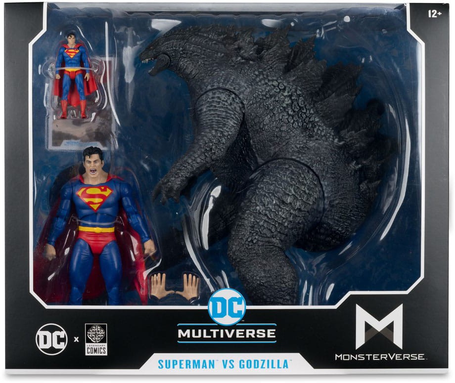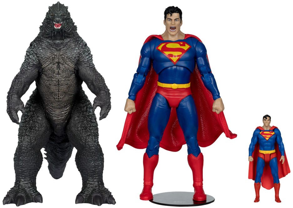 - Includes 7" Superman action figure, 3" Superman mini-figure, and 12" Godzilla figure
