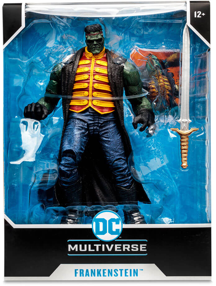 - Frankenstein is featured in his look from the Seven Soldiers of Victory DC comic series Frankenstein comes with sword and base
