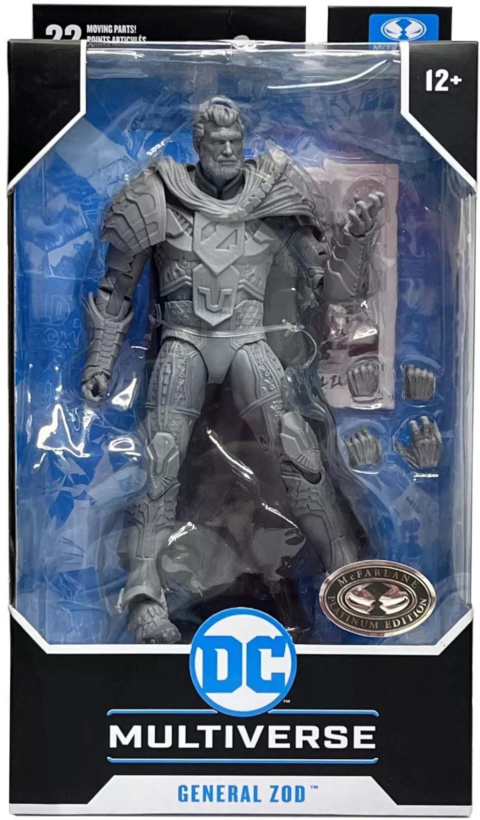 - General Zod comes with a pair of alternate hands and a base