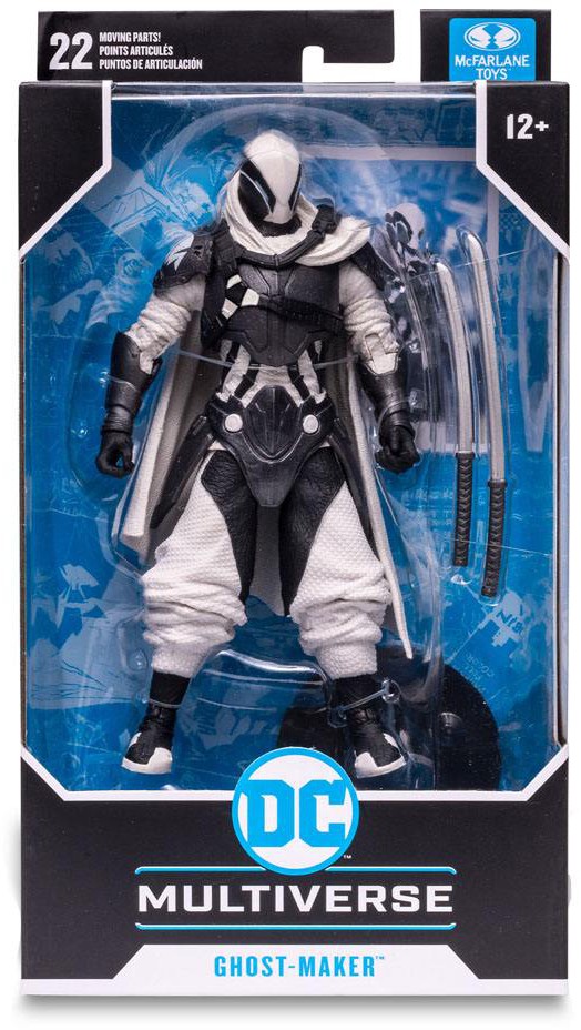 Detaljerad Ghost Maker figur baserad på karaktärens utseende i DC Future State från DC Multiverse. Figuren är ca 18 cm hög och fullt ledad med upp till 22 rörliga delar. Kommer med tillbehör i en fönsterkartong.