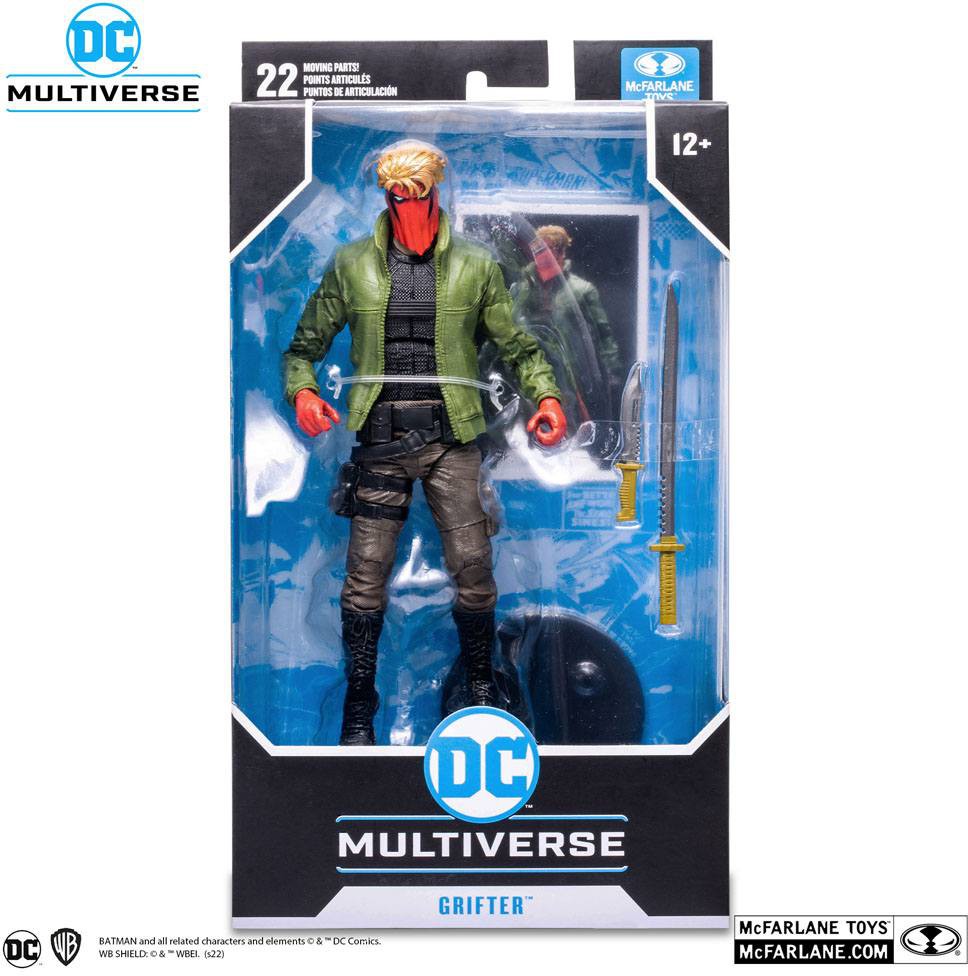 Detaljerad Grifter figur baserad på karaktärens utseende i Infinite Frontier från DC Multiverse. Figuren är ca 18 cm hög och fullt ledad med upp till 22 rörliga delar. Kommer med tillbehör i en fönsterkartong.