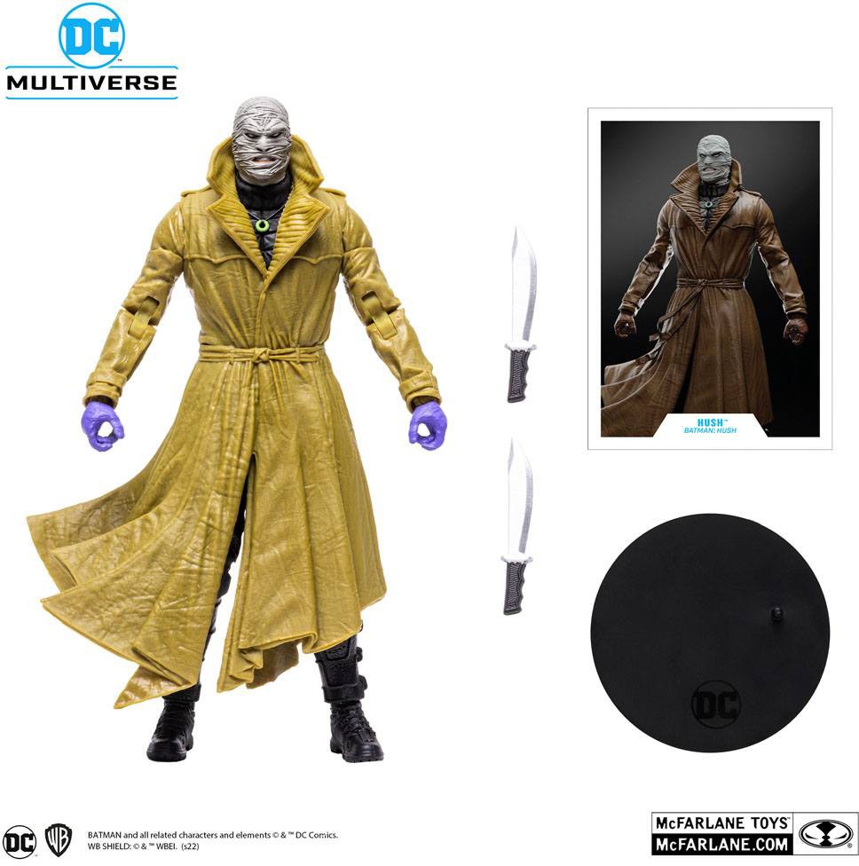 Detaljerad Hush actionfigur baserad på karaktärens utseende i Batman: Hush från DC Multiverse. Figuren är ca 18 cm hög och fullt ledad med upp till 22 rörliga delar. Kommer med tillbehör i en fönsterkartong.