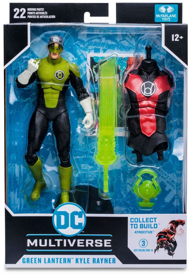 Detaljerad Kyle Rayner actionfigur baserad på karaktärens utseende i Blackest Night från DC Multiverse. Figuren är ca 18 cm hög och fullt ledad med upp till 22 rörliga delar. Kommer med flera tillbehör inklusive en build a figure del till Atrocitus.