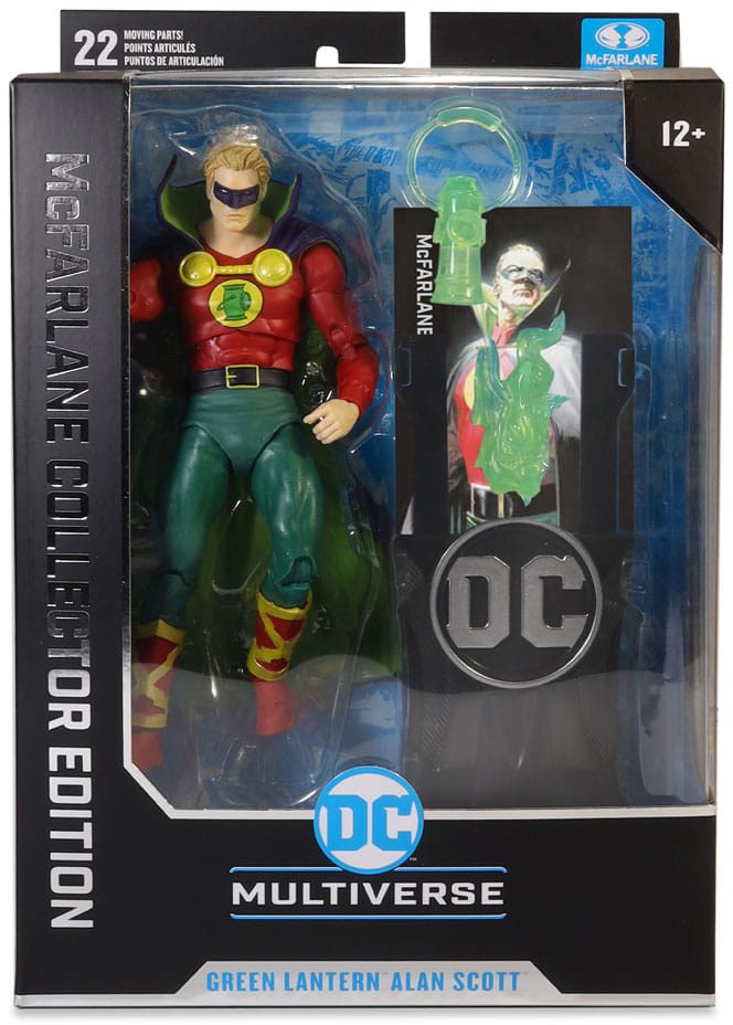 Alan Scott var med och grundade Justice Society of America och har varit en banbrytare i över 80 år. Alan Scott är den första som bär namnet Green Lantern, med en ring som fokuserar en mystisk grön flamma. När tiden gick och Alan åldrades utvecklades han till en mentor och inspirationskälla för generationer av nya superhjältar. Green Lantern laddade sin ring genom sin magiska lykta och gjorde sitt smaragdgröna sken till ett tecken på hopp och en källa till inspiration i årtionden.
