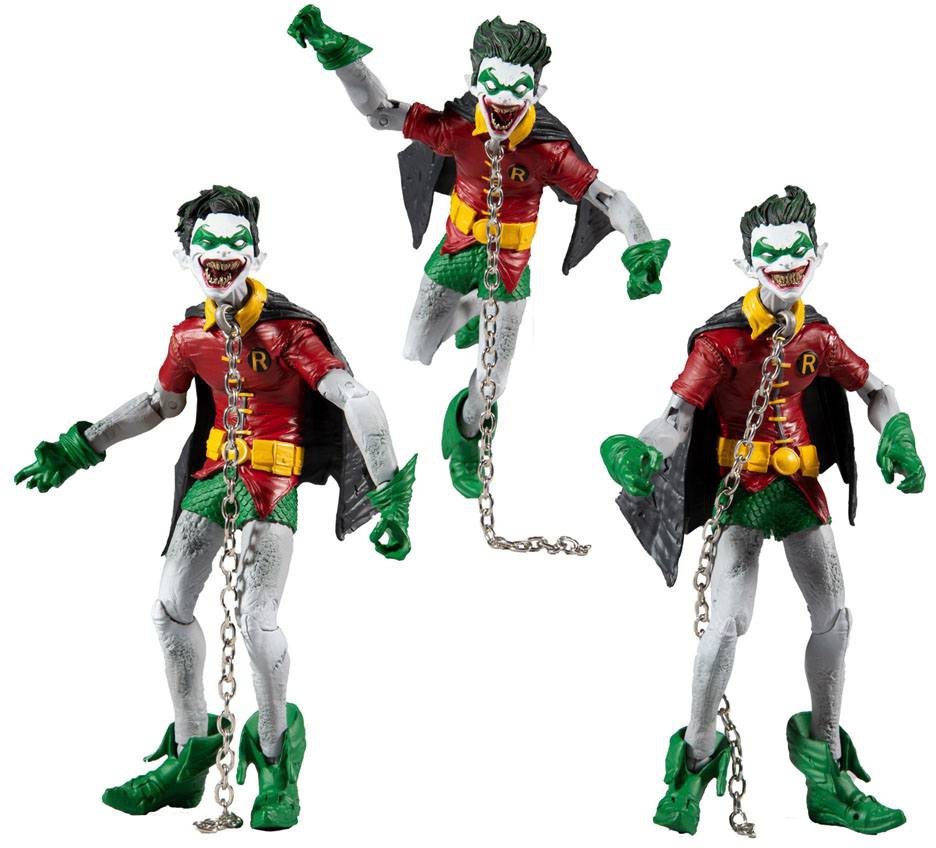 - Batman Who Laughs comes with 2 knives. All Three Robins have their own removable metal chain. Set includes 4 bases