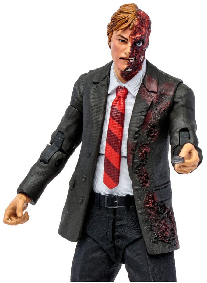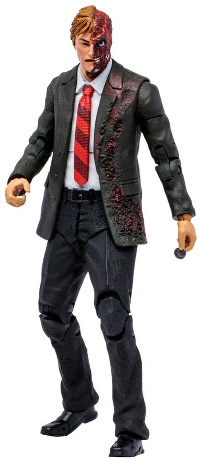 A prominent and well-educated District Attorney, Harvey Dent fought valiantly to uphold the law and make the city a better place. In any other city, it would have worked. Not in Gotham- a place where greed and corruption stretch from the depths of Crime Alley™ to the shimmering heights of the mayor's office. Dent's spiral into Gotham's madness came swiftly after a criminal threw acid into his face, leaving half of it horribly scarred. Seeking refuge in the underbelly of Gotham, the name Harvey Dent and all the good it stood for was lost... and Two-Face rose from the darkness.