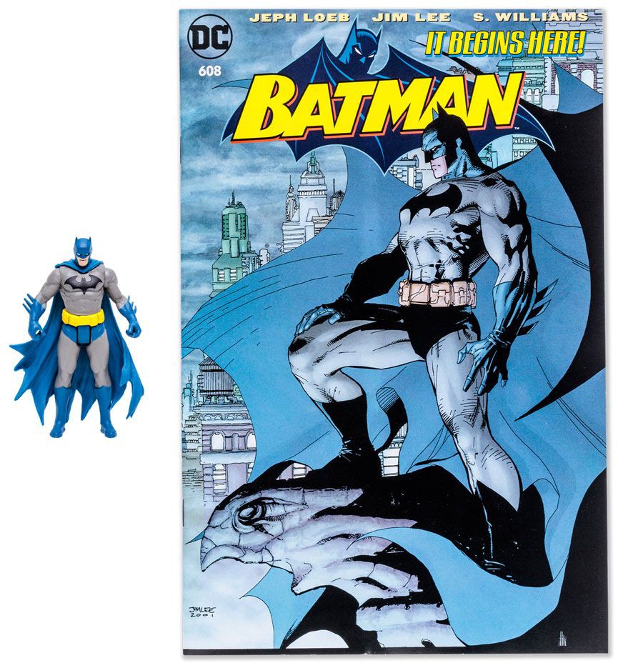 8 cm hög Batman actionfigur baserad på Batman: Hush från DC Multiverse. Figuren har 5 rörliga delar och kommer i en blister förpackning tillsammans med en reprint av en serietidning med karaktären.