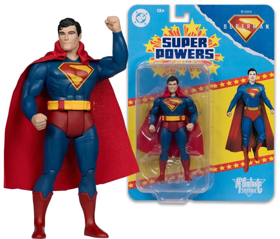 - SUPERMAN is showcased in DC SUPER POWERS themed blister card packaging