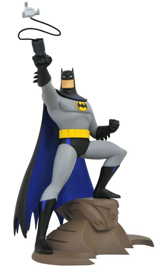 The Dark Knight returns in this all-new Gallery Diorama based on Batman: The Animated Series! Depicting Batman firing his grappling gun, this approximately 25 cm sculpture is made of high-grade PVC with collectible-quality sculpting and paint applications.