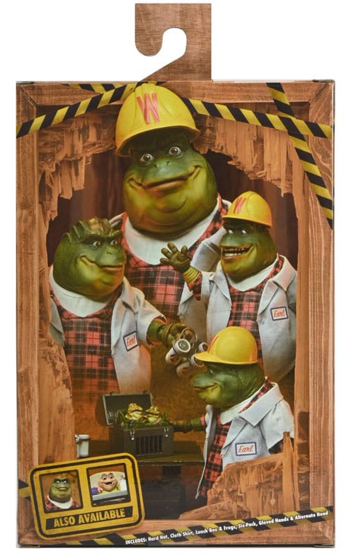 The Sinclairs are your average family with one BIG difference... they're talking dinosaurs living in the year 60,000,003 BC! Jim Henson's creatures for Dinosaurs made this early 1990s show a comedy hit that's still certifiably fresh. Now you can bring home a little bit of the prehistoric with NECA's detailed action figures. This 7" scale Earl Sinclair action figure is ready for work at WESAYSO! The figure is fully articulated (including tail) and packed with accessories: includes interchangeable heads, interchangeable gloved hands, "WESAYSO" hard hat, lunchbox, little buddies, cans and soft goods work shirt. Collector-friendly window box packaging with opening front flap.