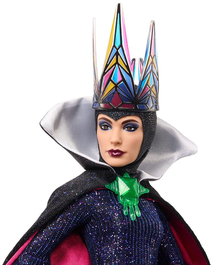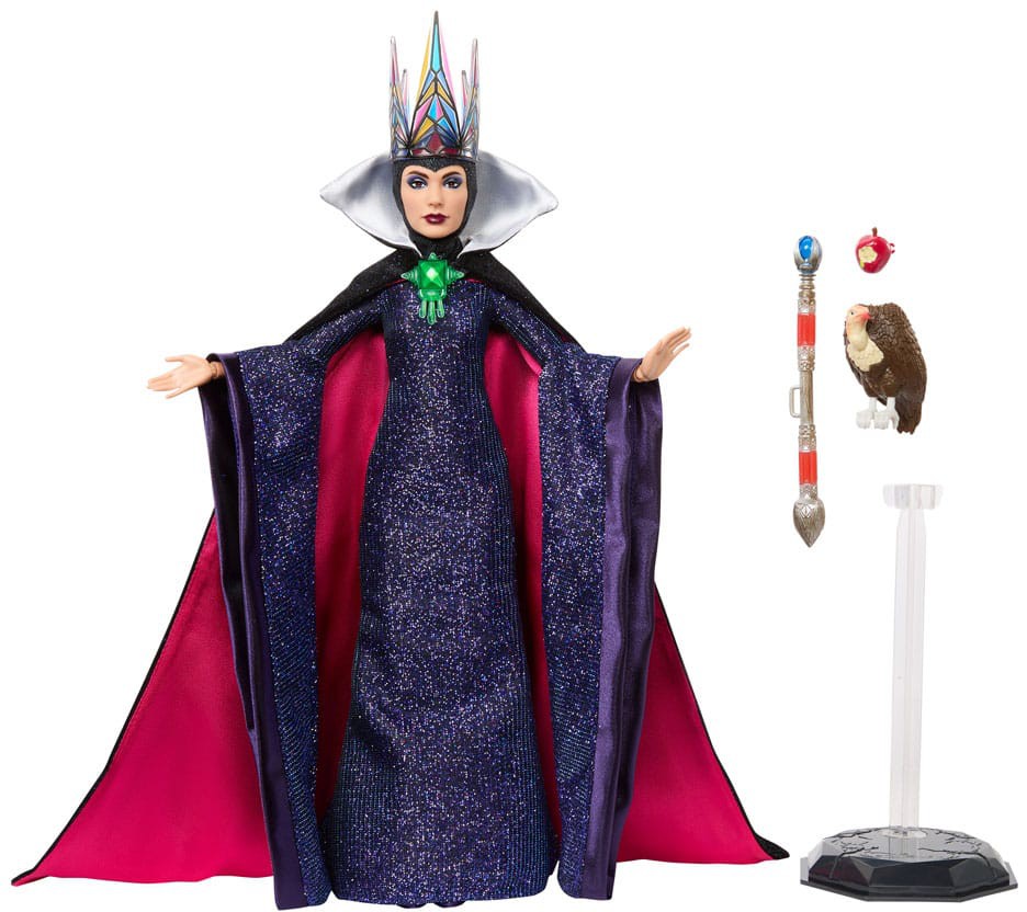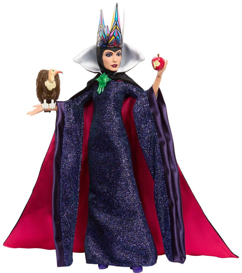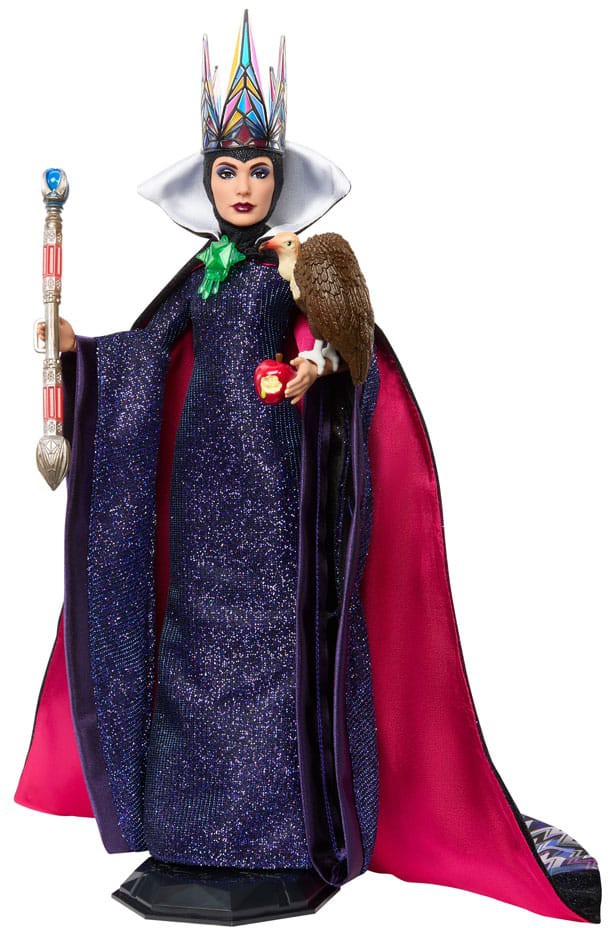 Disney fans of all ages will love this special collector edition Disney Evil Queen doll, inspired by Disney's live-action movie Snow White! Inspired by the jealous Villain who envies her stepdaughter Snow White, the Evil Queen doll's stunning look features a glittering blue gown, velvet cape and majestic gem-studded crown. With signature accessories inspired by the film, including a poisonous green apple and royal scepter, this Evil Queen doll brings sinister style to any Disney fan's collection. Doll cannot stand alone.