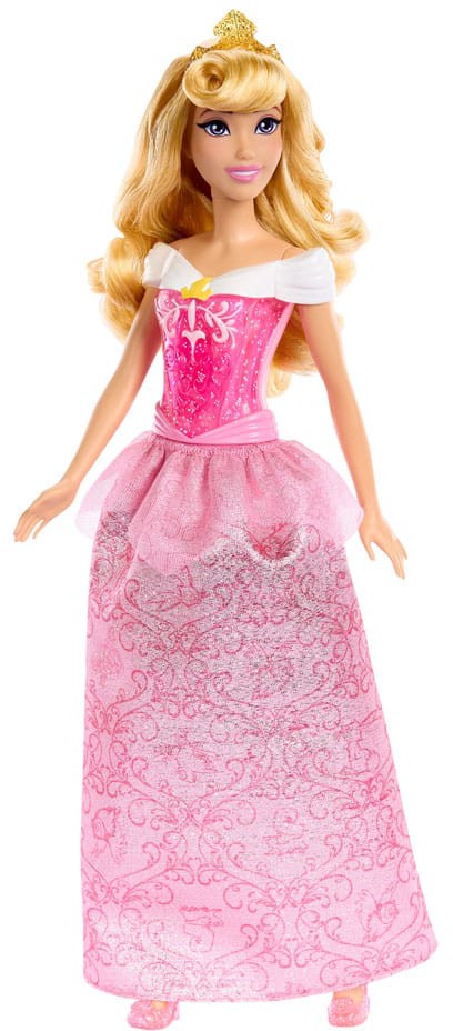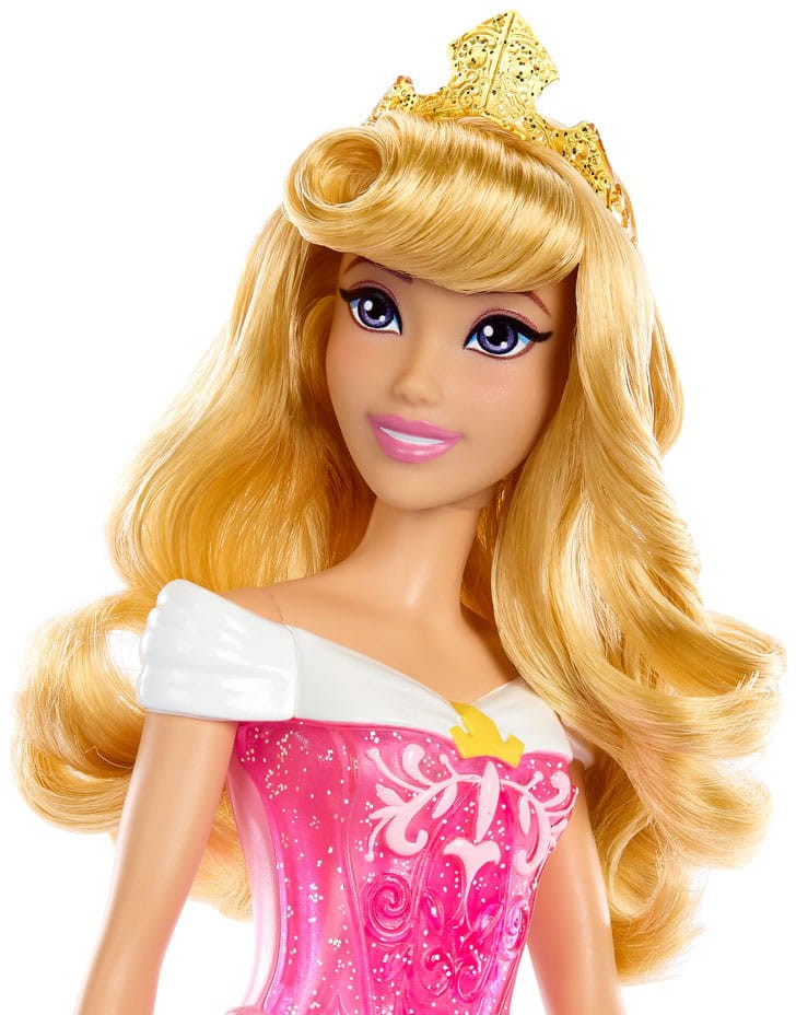 Meet this Aurora doll, inspired by the positive and imaginative princess from Disney's Sleeping Beauty. This posable fashion doll is shown in a sparkling outfit and accessories that include shoes and a tiara. In her signature look from the movie, this Aurora doll is ready for any adventure! Doll cannot stand alone.