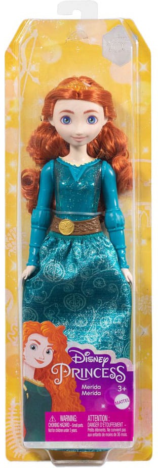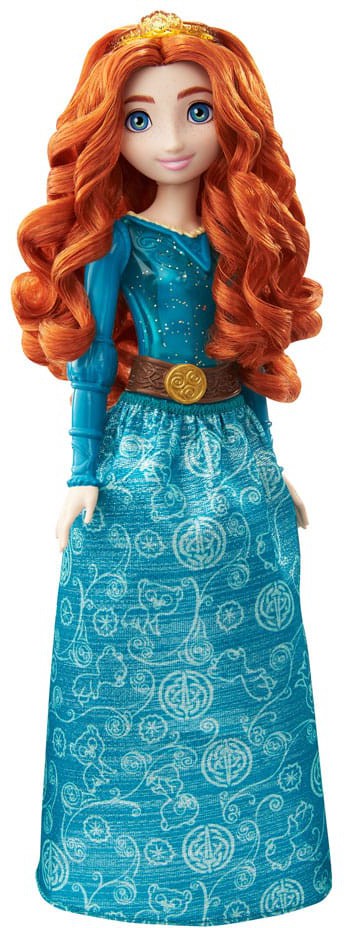 Meet this Merida doll, inspired by the confident and loyal princess from Disney and Pixar's Brave! This posable fashion doll is shown in a sparkling outfit and accessories that include shoes and a tiara. In her signature look from the movie, this Merida doll is ready for any adventure! Doll cannot stand alone.